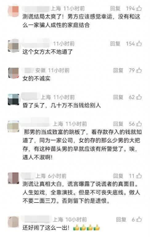 双方各执一词,尤其是关于资金部分,小吴说一毛钱没有还,小陈说现金还了22万元,包括14万现金和8个一万元现金,总有一个人在说谎。小陈同意进行司法测谎,小吴也只好同意。于是,法院委托上海市有资质的心理测试实验室对二人“测谎”。